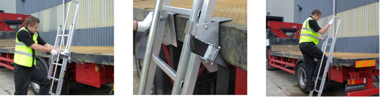 The Vehicle Access Ladder meets Work at Height Regulations. The maneuverable brackets and adjustable handrail mean this robust ladder can be used as an aid for access to most standard flatbed and curtain sided vehicles.